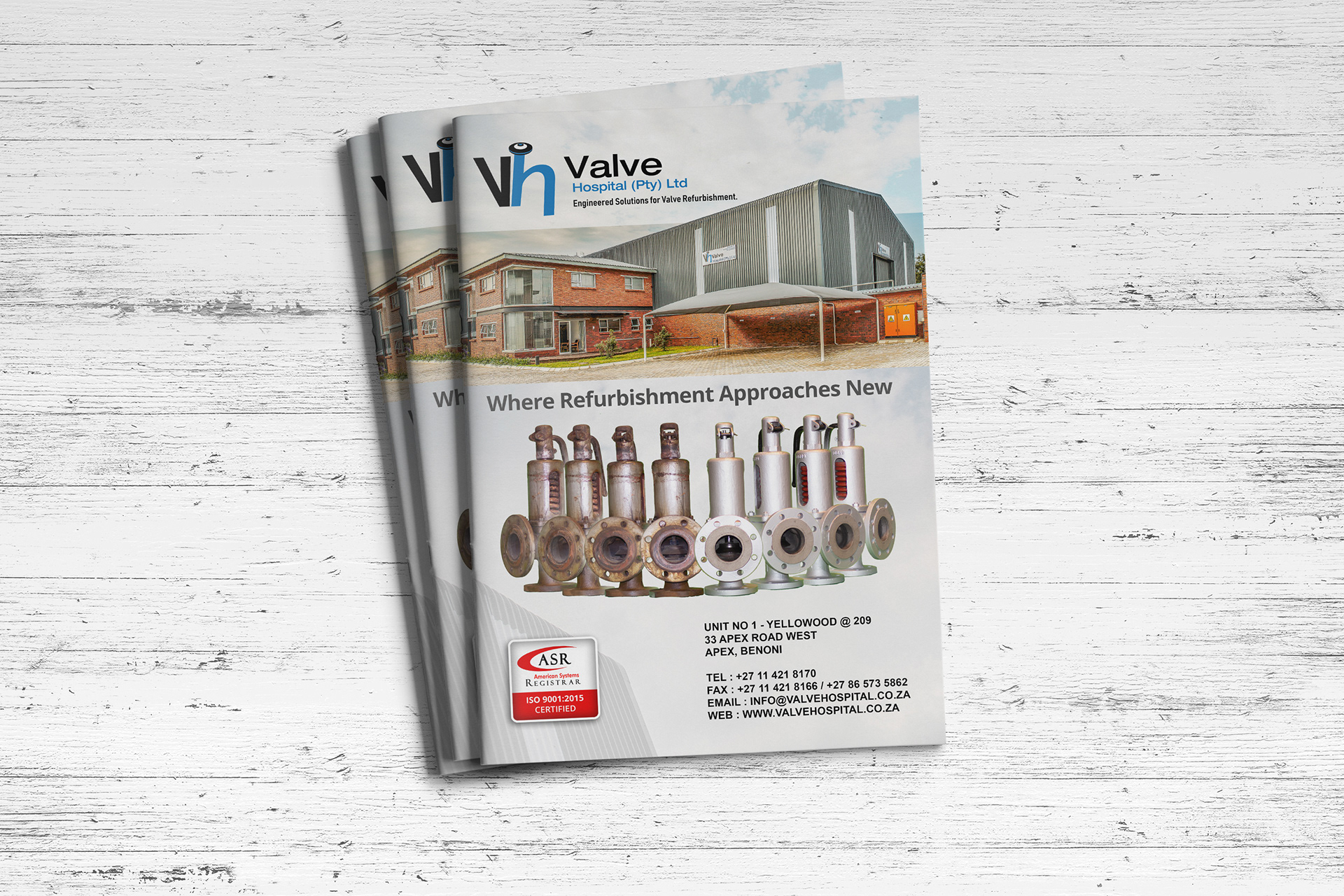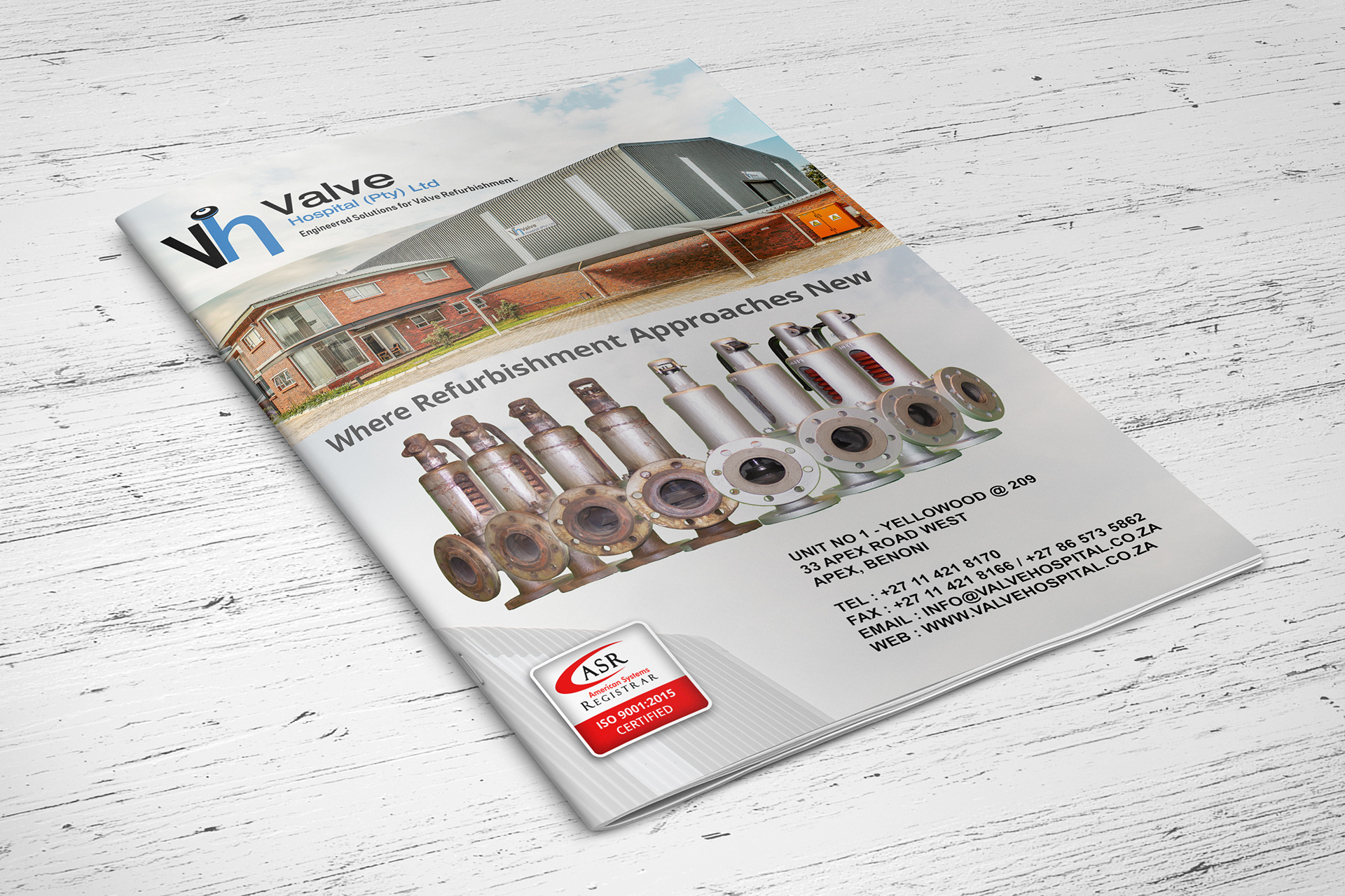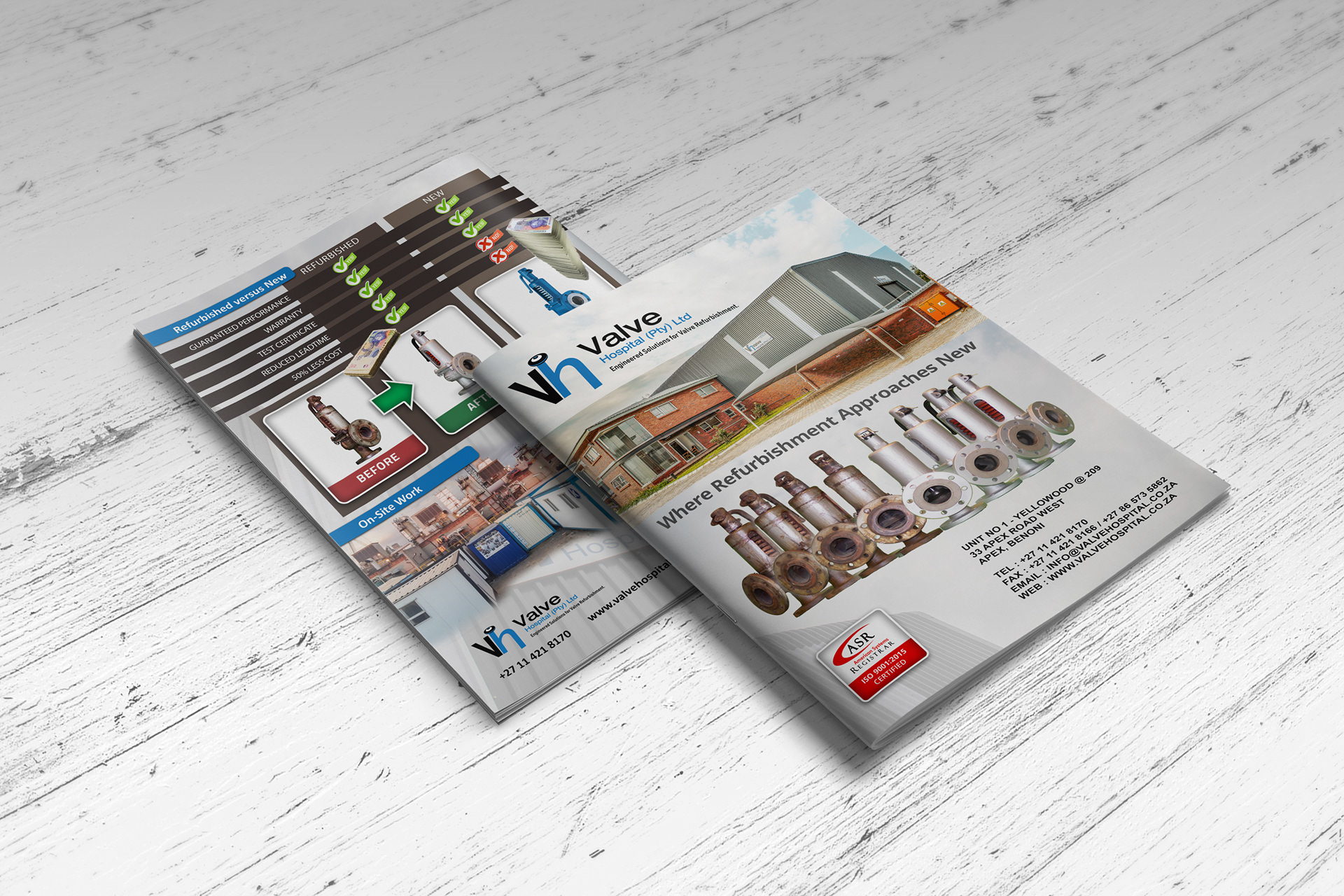 Brochure design for a valve refurbishment company.